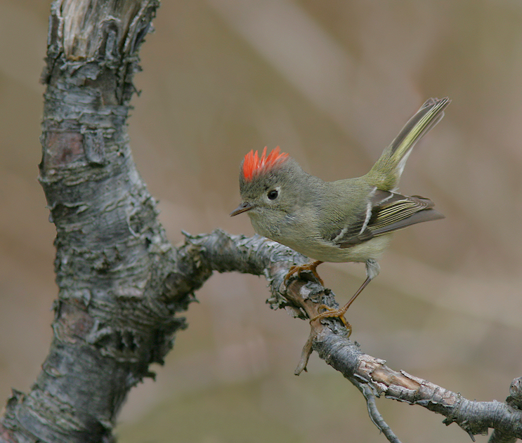 | Ruby-crowned Kinglet showing off it's ruby crown |